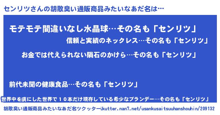 | ヒーロー風カッコイイあだ名 | 『慈愛の使者センリツ』『仮面センダー』 |