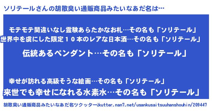 | 意味不明あだ名 | 『とにかく怪しいソリテール』 |