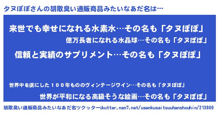 | ポケモン風あだ名 | 『ヒタヌポポ』『ゼニタヌ』 |