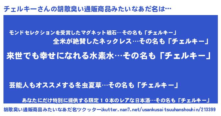 | 意味不明あだ名 | 『永久保存チェルキー』 |