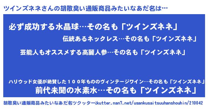 | 意味不明あだ名 | 『自称ツインズネネ』 |