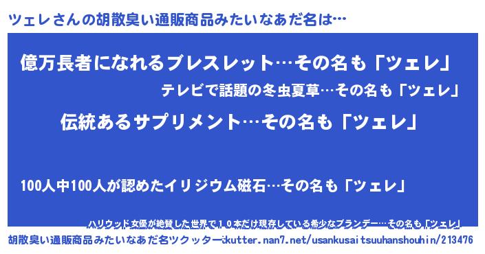 | 意味不明あだ名 | 『とにかく怪しいツェレ』『自称ツェレ』 |