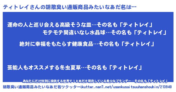 | 意味不明あだ名 | 『永久保存ティトレイ』『自称ティトレイ』 |