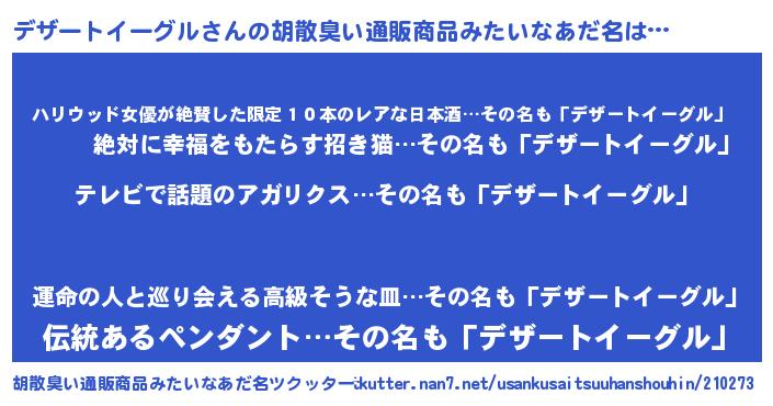 | 男性向けラノベタイトル風あだ名 | 『転生したらデザートイーグルだった件』 |