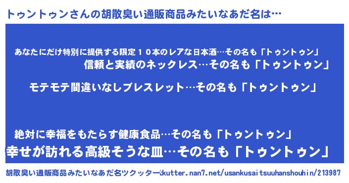 | 男性向けラノベタイトル風あだ名 | 『トゥントゥンアートオンライン』 |
