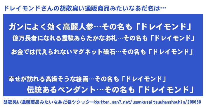| 男性向けラノベタイトル風あだ名 | 『転生したらドレイモンドだった件』 |