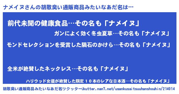 | 欧米人風あだ名 | 『アンジェラ・ナメイヌ』 |