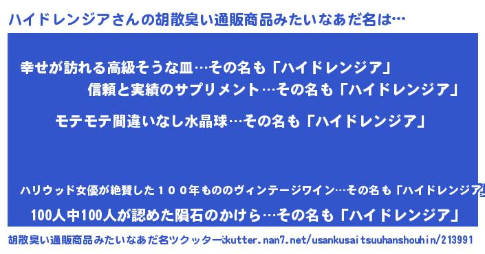 | ヒーロー風カッコイイあだ名 | 『スーパーハイドレンジア』 |