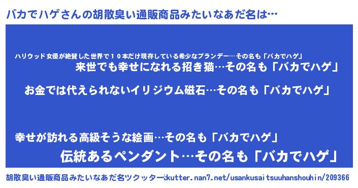 | ヒーロー風カッコイイあだ名 | 『愛の使者バカでハゲ』『仮面バカダー』 |