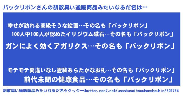 | 意味不明あだ名 | 『自称バックリボン』 |