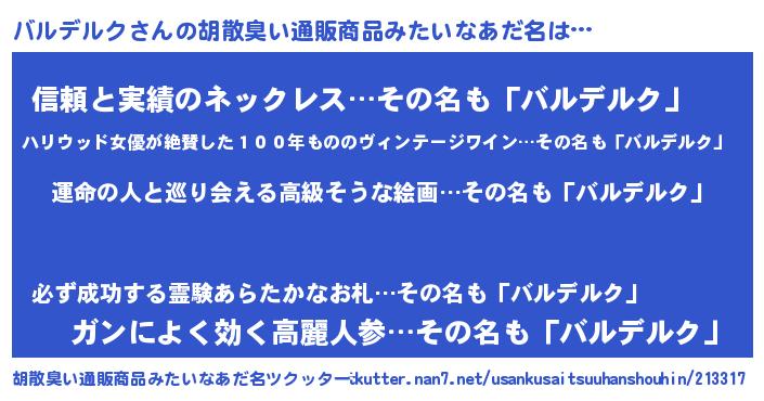 | 意味不明あだ名 | 『バルデルクフォーエバー』 |