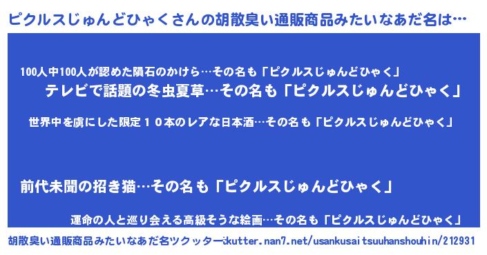 | 意味不明あだ名 | 『住所不定無職ピクルスじゅんどひゃく(62歳)』 |