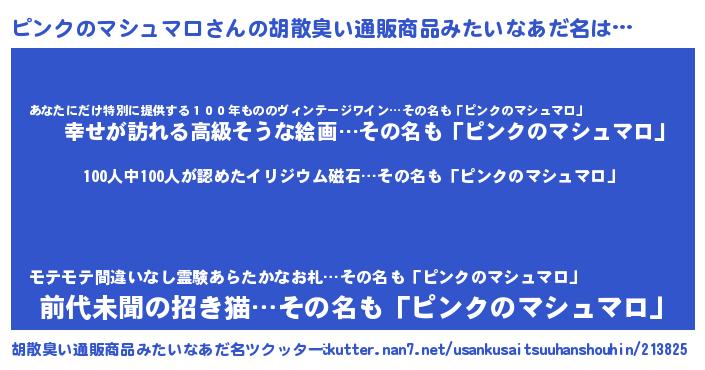 | ヒーロー風カッコイイあだ名 | 『正義の使者ピンクのマシュマロ』 |