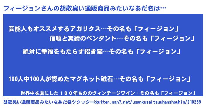 | ヘコむあだ名 | 『フィージョン(笑)』『フィぷりん』 |