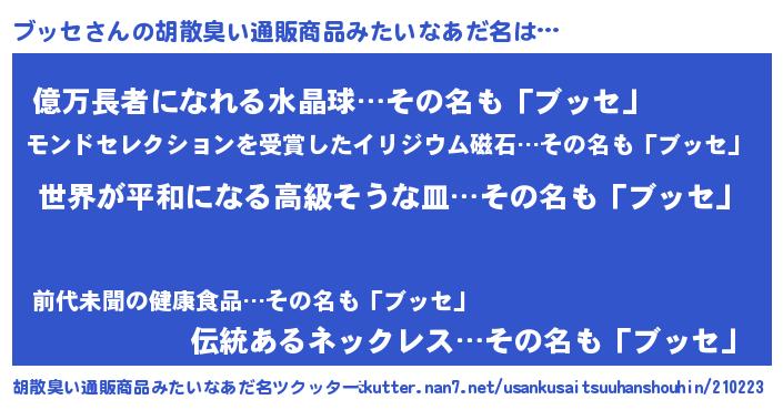 | ヒーロー風カッコイイあだ名 | 『ウルトラブッセマン』『スーパーブッセ』 |