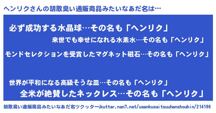 | 肩書あだ名 | 『ヘンリク教授』『ヘンリク船長』 |
