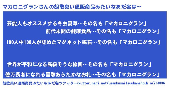 | 欧米人風あだ名 | 『ダニエルマカロニグラン』 |