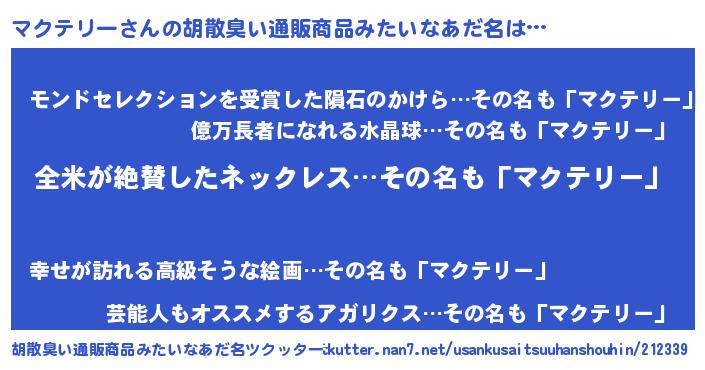 | 意味不明あだ名 | 『とにかく怪しいマクテリー』 |
