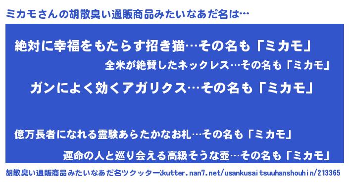 | 意味不明あだ名 | 『自称ミカモ』『永久保存ミカモ』 |