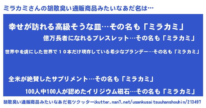 | 欧米人風あだ名 | 『ダレノガレミラカミ』 |