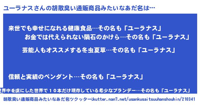 | 意味不明あだ名 | 『自称ユーラナス』『永久保存ユーラナス』 |