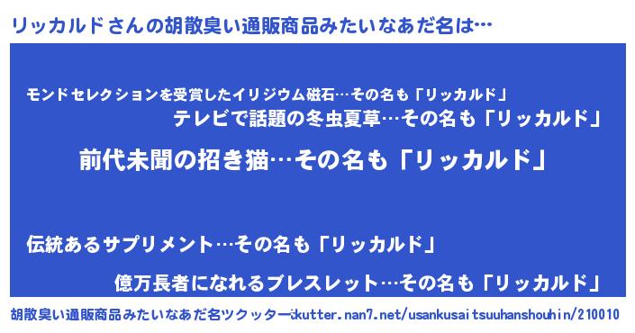 | 意味不明あだ名 | 『永久保存リッカルド』『自称リッカルド』 |
