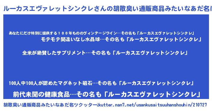 ルーカスエヴァレットシンクレさんの胡散臭い通販商品みたいなあだ名をツクッター!