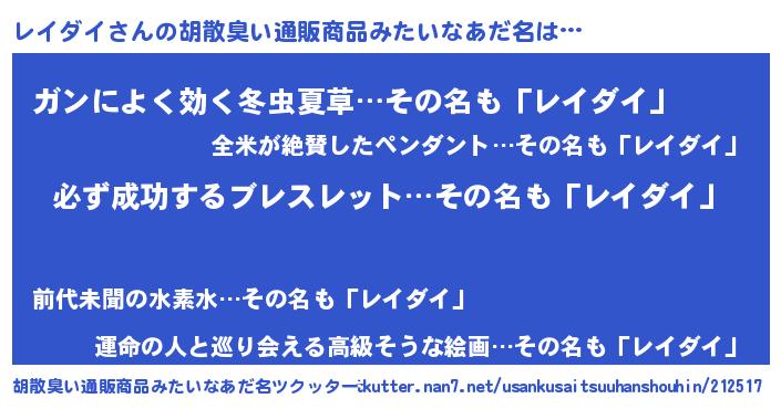 | 意味不明あだ名 | 『ペロリンレイダイ』『自称レイダイ』 |