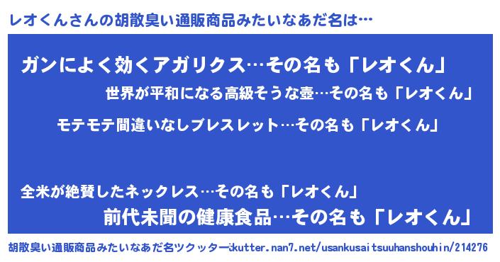 | ヘコむあだ名 | 『レオにー』『レオくん(爆)』 |