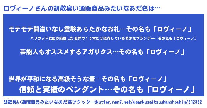 | ヘコむあだ名 | 『ロヴにゅー』『ロヴっ子』『牛乳』 |