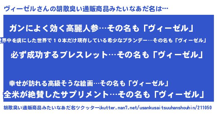 | 男性向けラノベタイトル風あだ名 | 『ヴィーゼルの憂鬱』 |